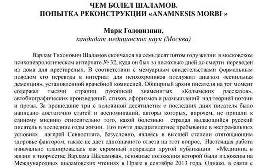 - к.м.н. М.В. Головизнин «Взаимное влияние болезни и творческого акта (Кандинский, Ван-Гог, Шаламов)»